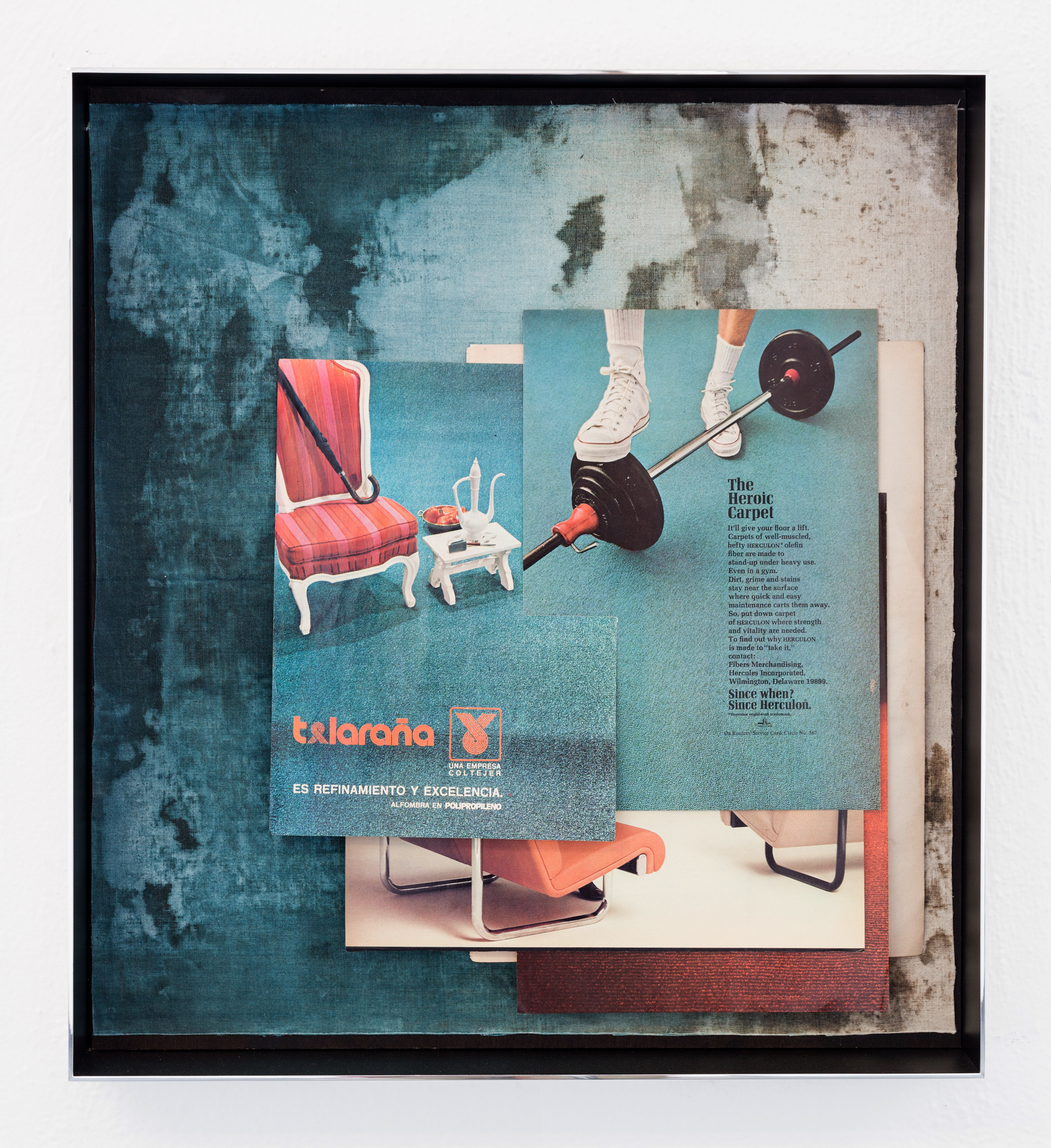 Untitled (herculon, telaraña), 2019, magazine pages, dyed linen, wax, 56 x 50 cm