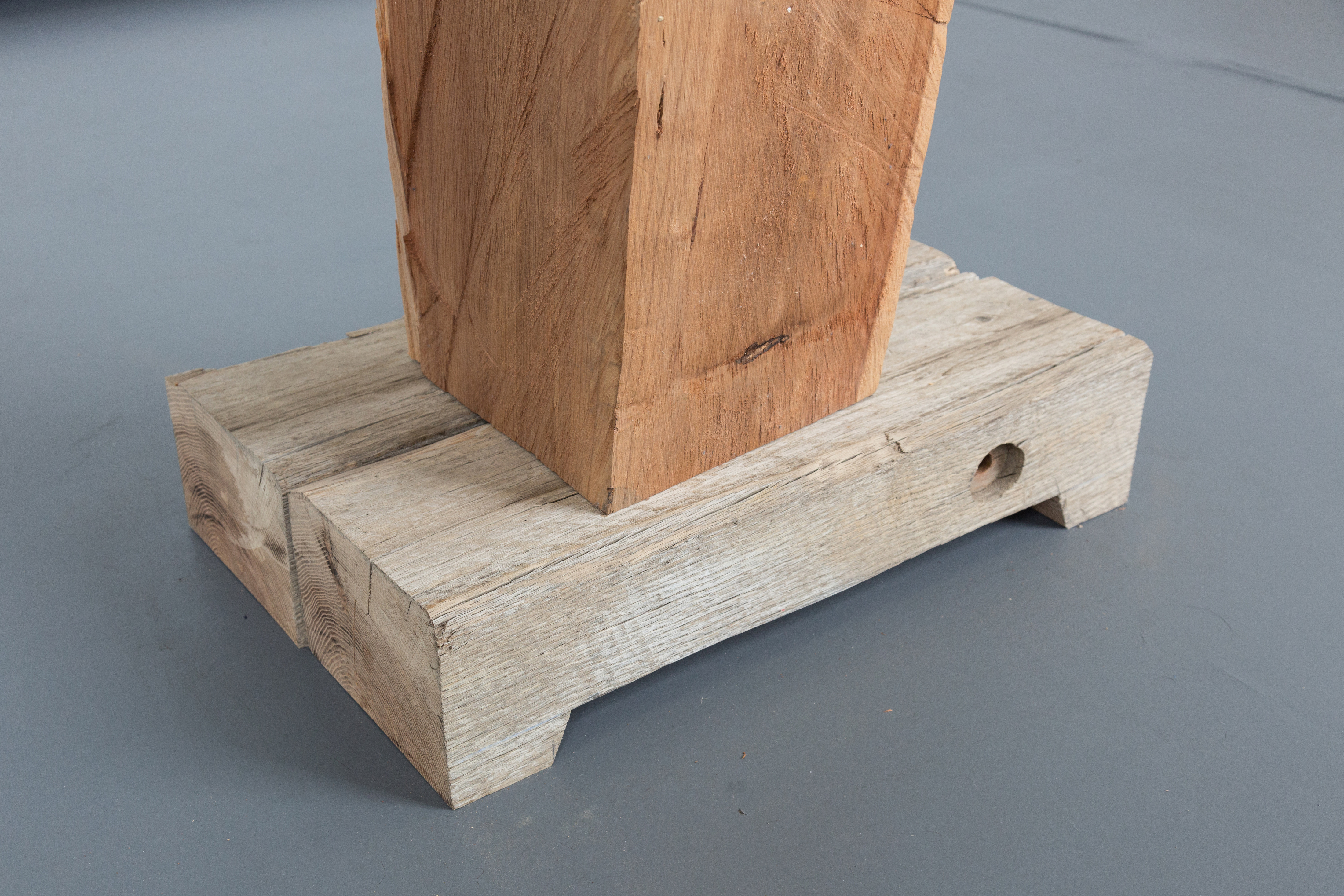 Woodman (anthropomorphism cautionary tale), 2019, found and reclaimed wood, 40 x 63 x 182 cm