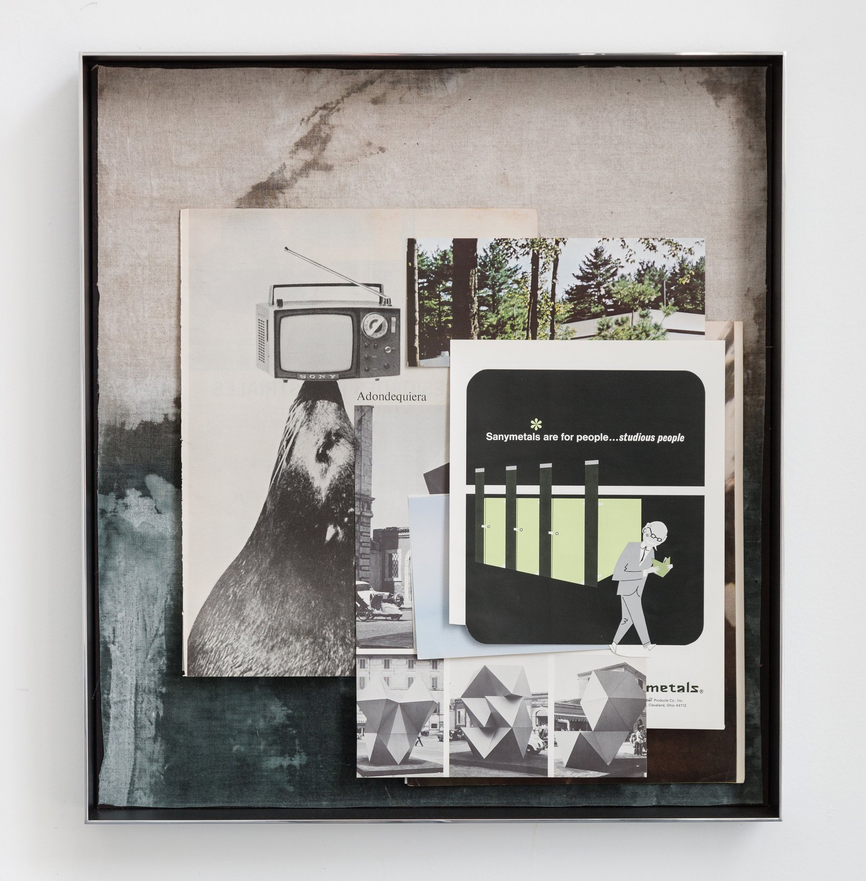 Untitled (natures call), 2019, magazines pages, dyed linen, wax, 56 x 50 cm